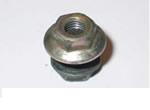 Outro tipo comum de porca é a "porca-cega", que tem um dos lados fechados. Geralmente é usada para locais expostos com função de melhorar o acabamento. Nas 125 são vistas na fixação superior dos amortecedores traseiros, por exemplo. É importante observar a montagem correta pois o excesso de aperto pode estourar a cobertura de metal. No caso de instalação de acessórios, essa porca deve ser trocada pois não permite o uso de parafusos mais longos. Outro elemento que trabalha junto com porcas e parafusos é a arruela. Encontrada em qualquer caixa ou gavetas de oficina, a arruela também deve ser usada com cuidado pois sua função também é a de manter a porca e parafuso no lugar. Algumas porcas e parafusos já vêm com ela integrada para que nunca seja esquecida. As arruelas mais utilizadas são a lisa, a de pressão e a cônica de pressão. É comum ver instalações de bagageiros em que são utilizadas arruelas lisas necessariamente mais finas, no pino de fixação do amortecedor, em razão do novo acessório instalado. Muitas vezes elas se deformam, encostando não só na bucha superior do amortecedor mas também na parte externa da flange, impedindo o livre movimento e provocando a quebra da haste do amortecedor por fadiga. A arruela de pressão nada mais é do que uma mola helicoidal de uma única espira que, ao ser instalada entre a a face da porca ou cabeça do parafuso, evita o afrouxamento desses elementos em função da elasticidade da arruela e das bordas existentes em suas extremidades.